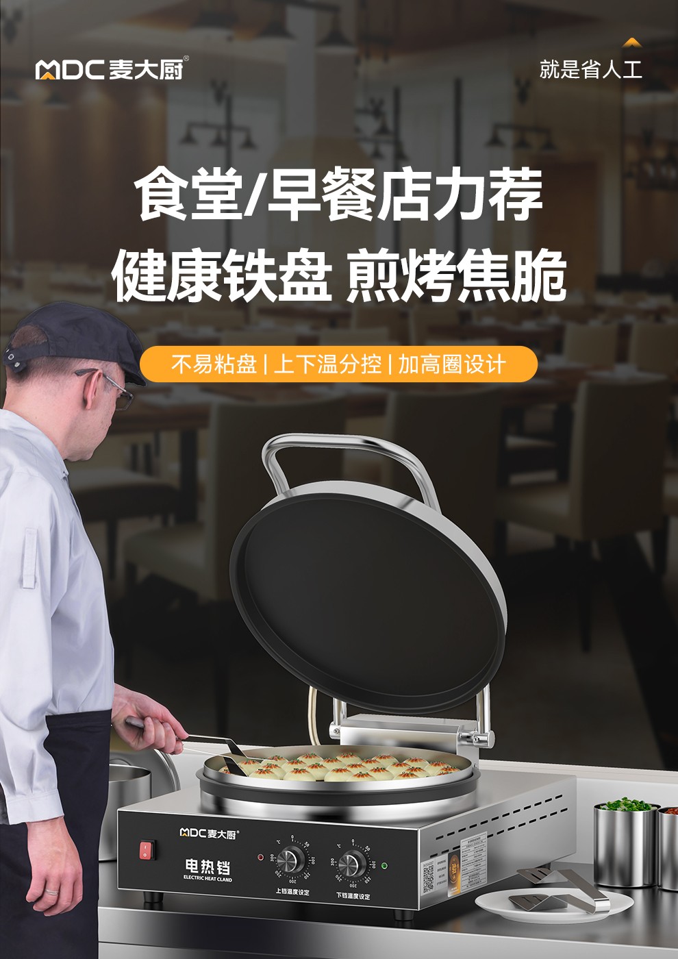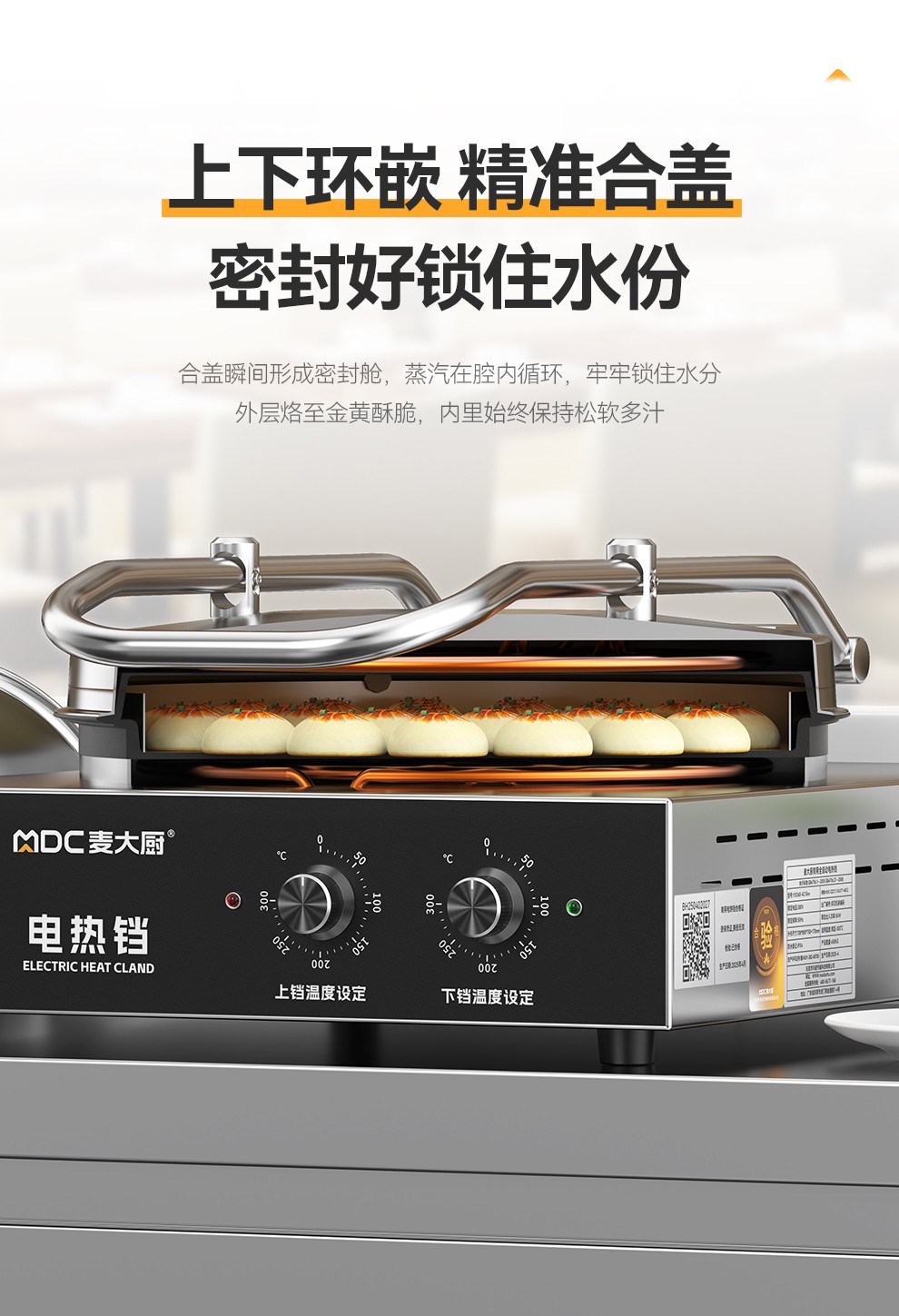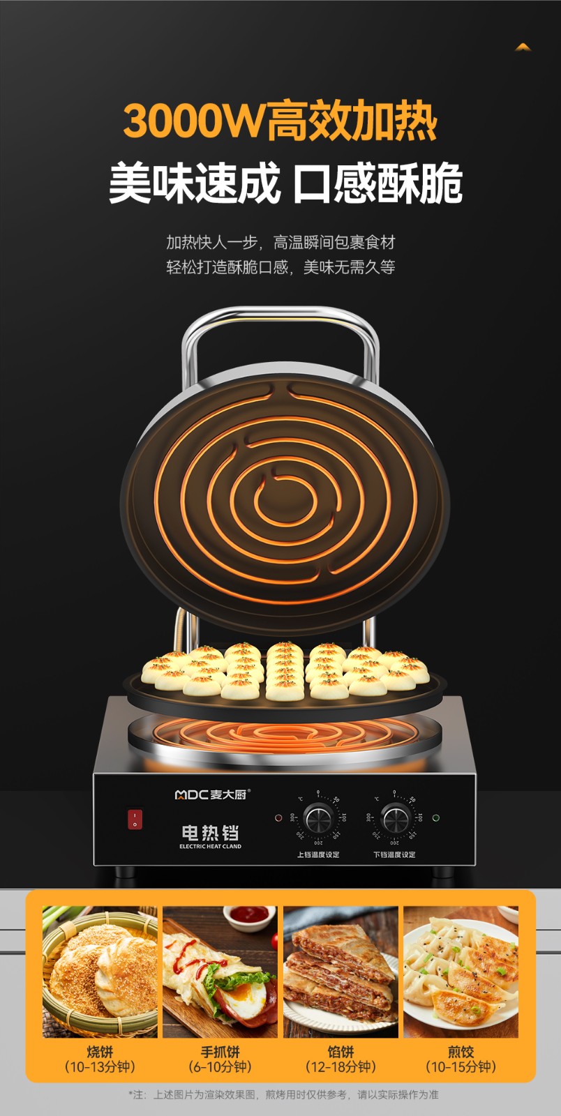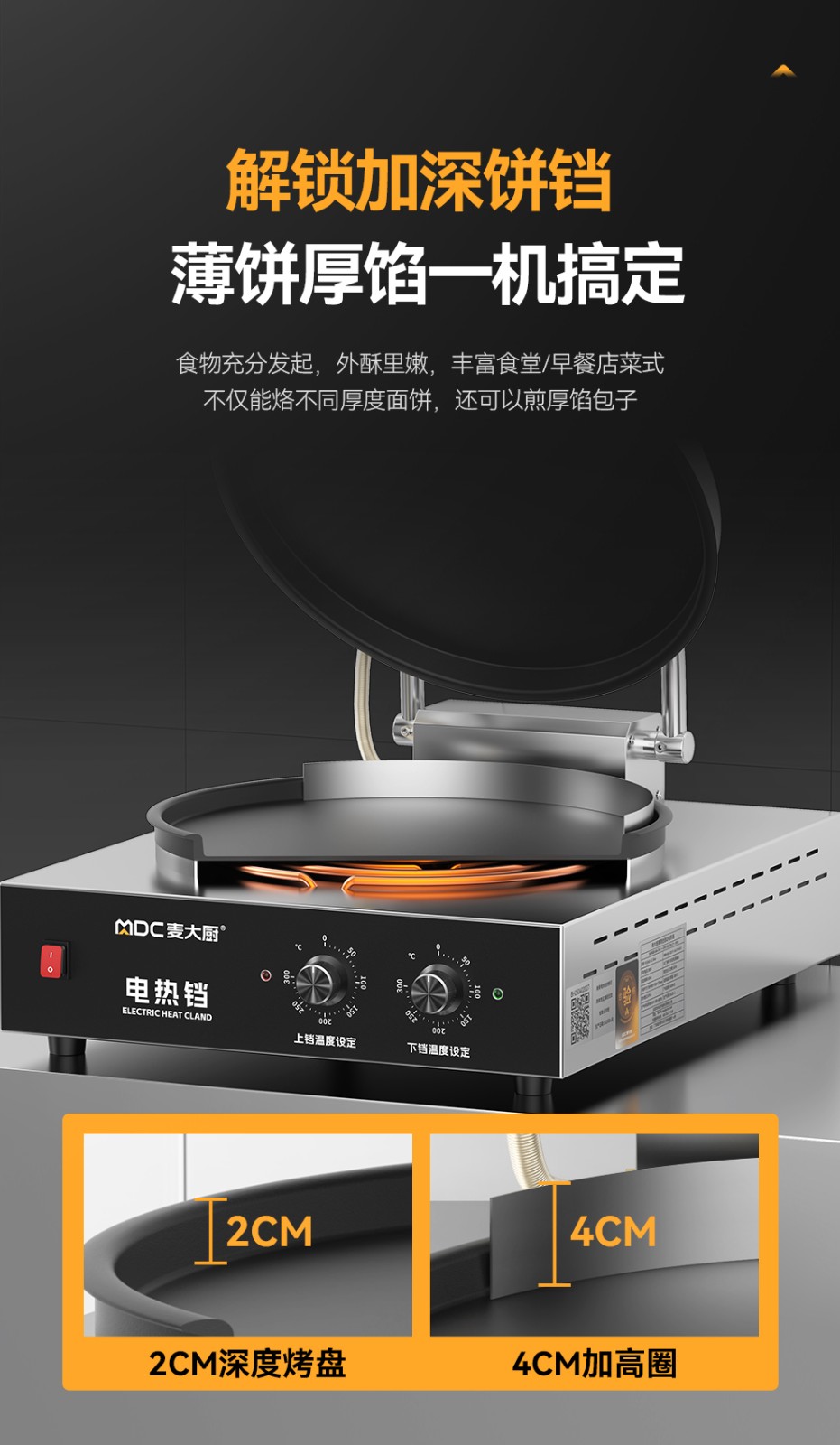 麥大廚臺(tái)式旋鈕款鐵鍋商用電餅鐺大型雙面加熱