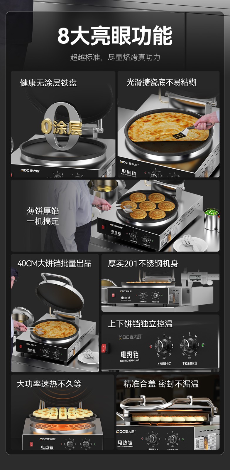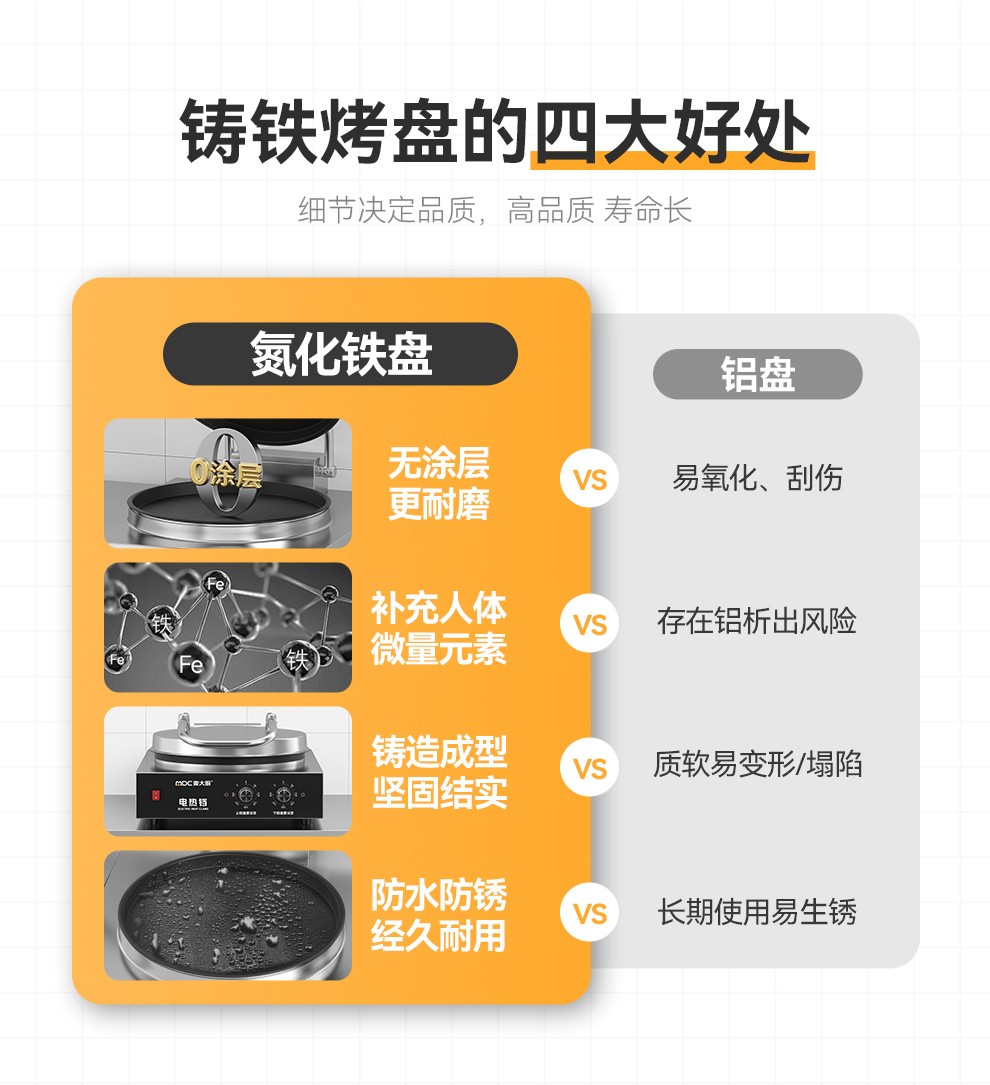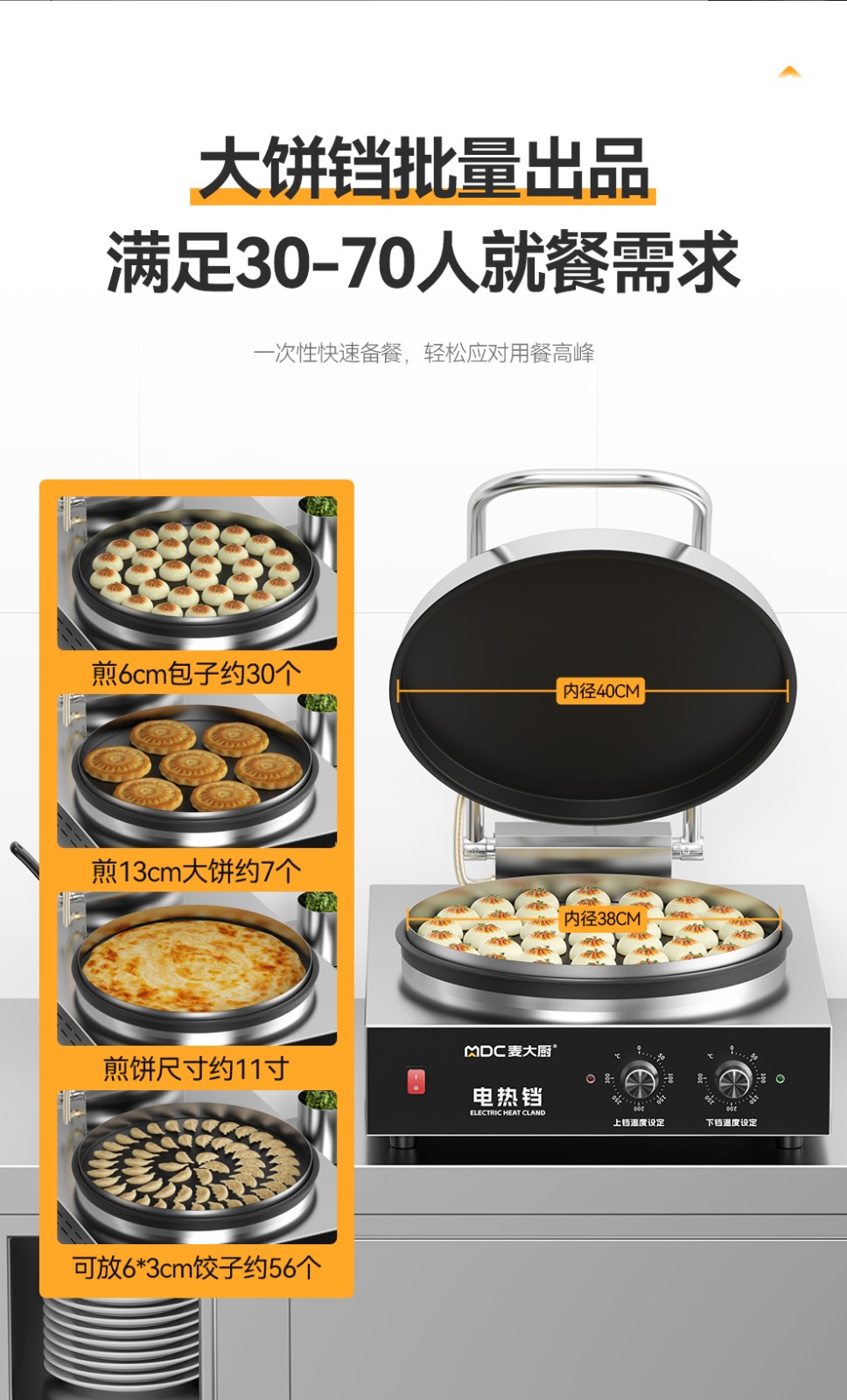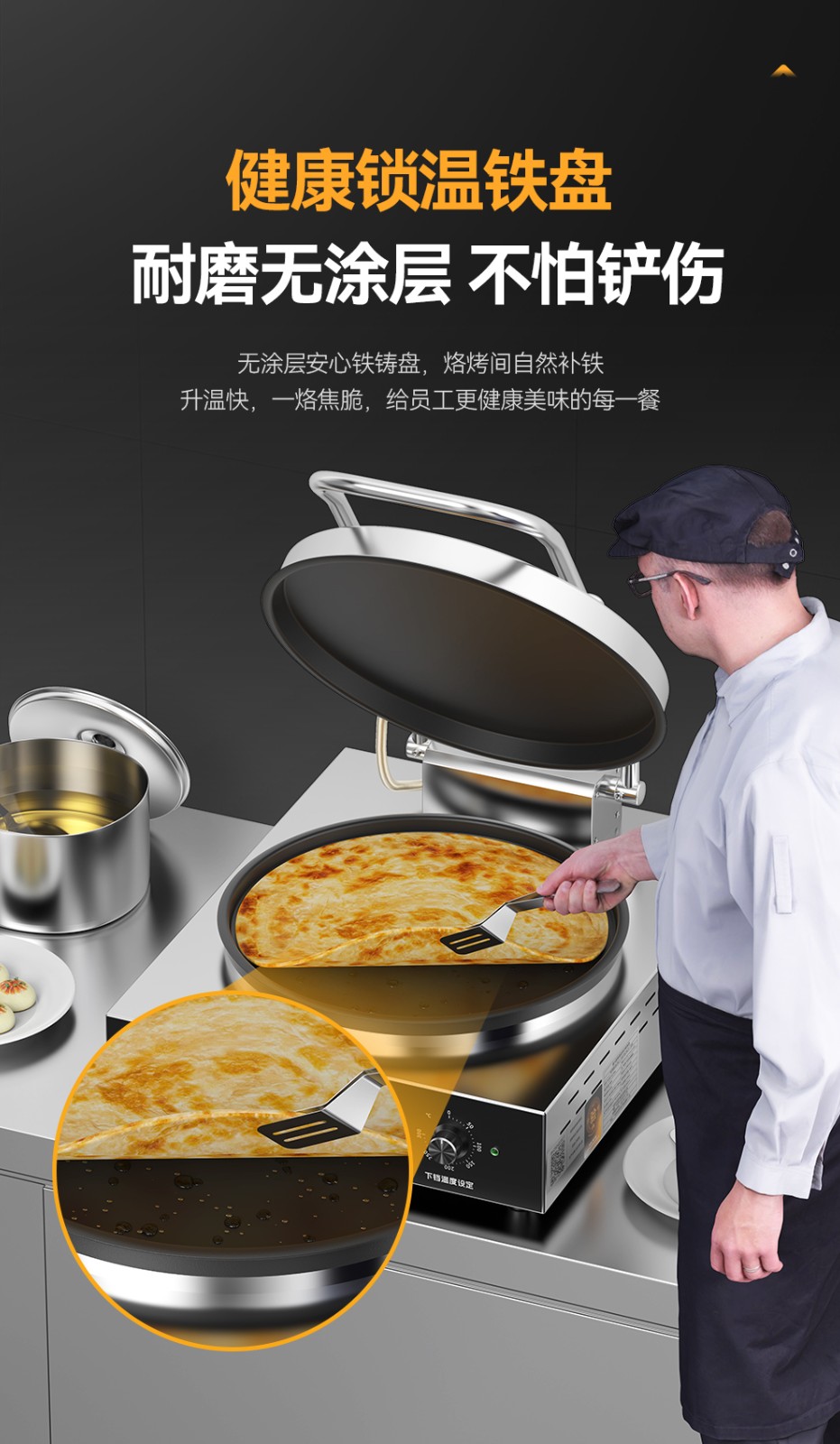 麥大廚臺(tái)式旋鈕款鐵鍋商用電餅鐺大型雙面加熱