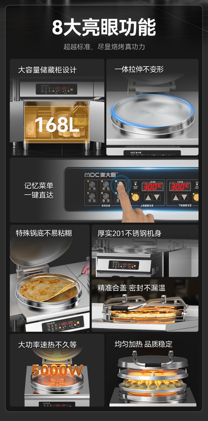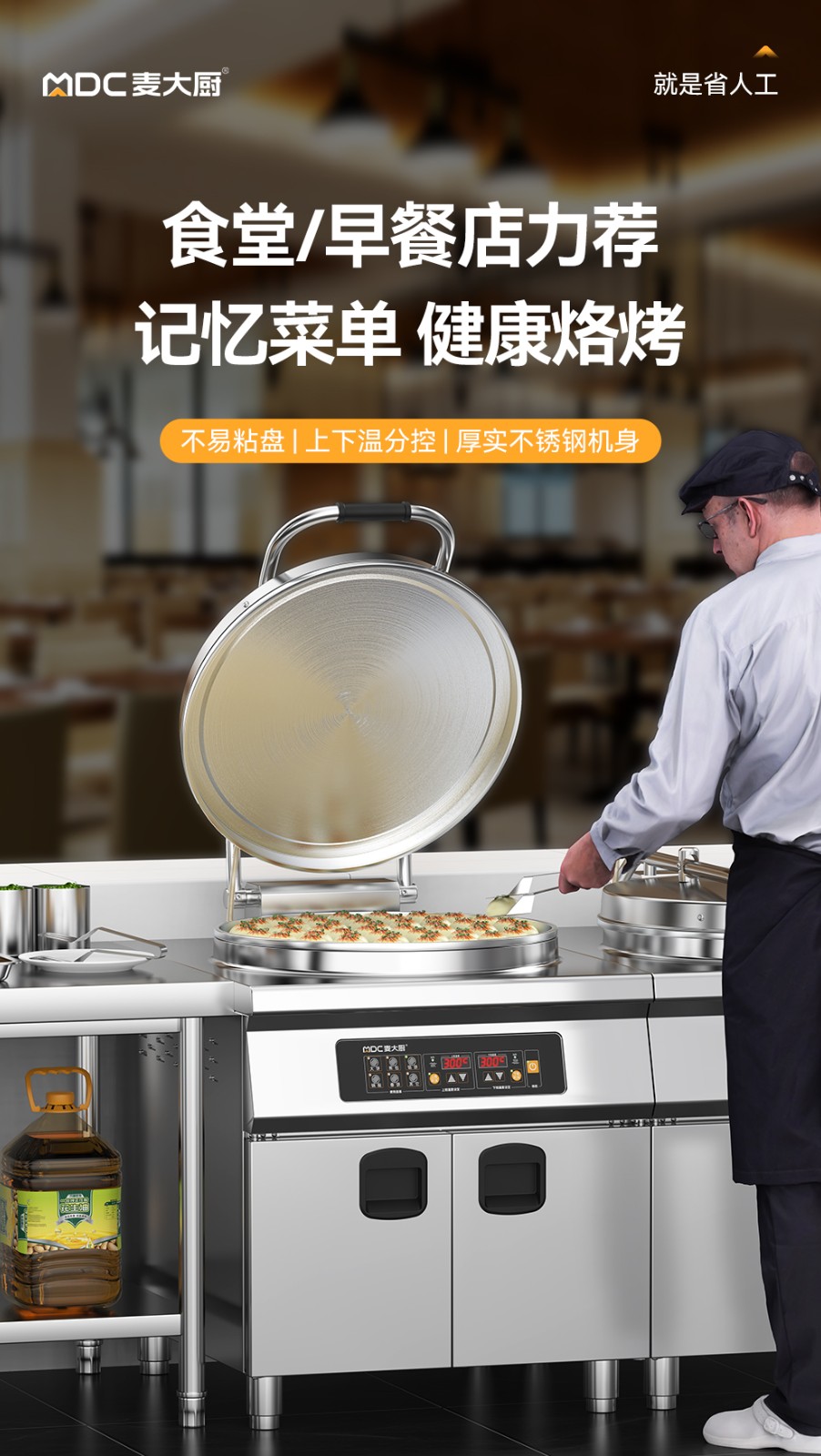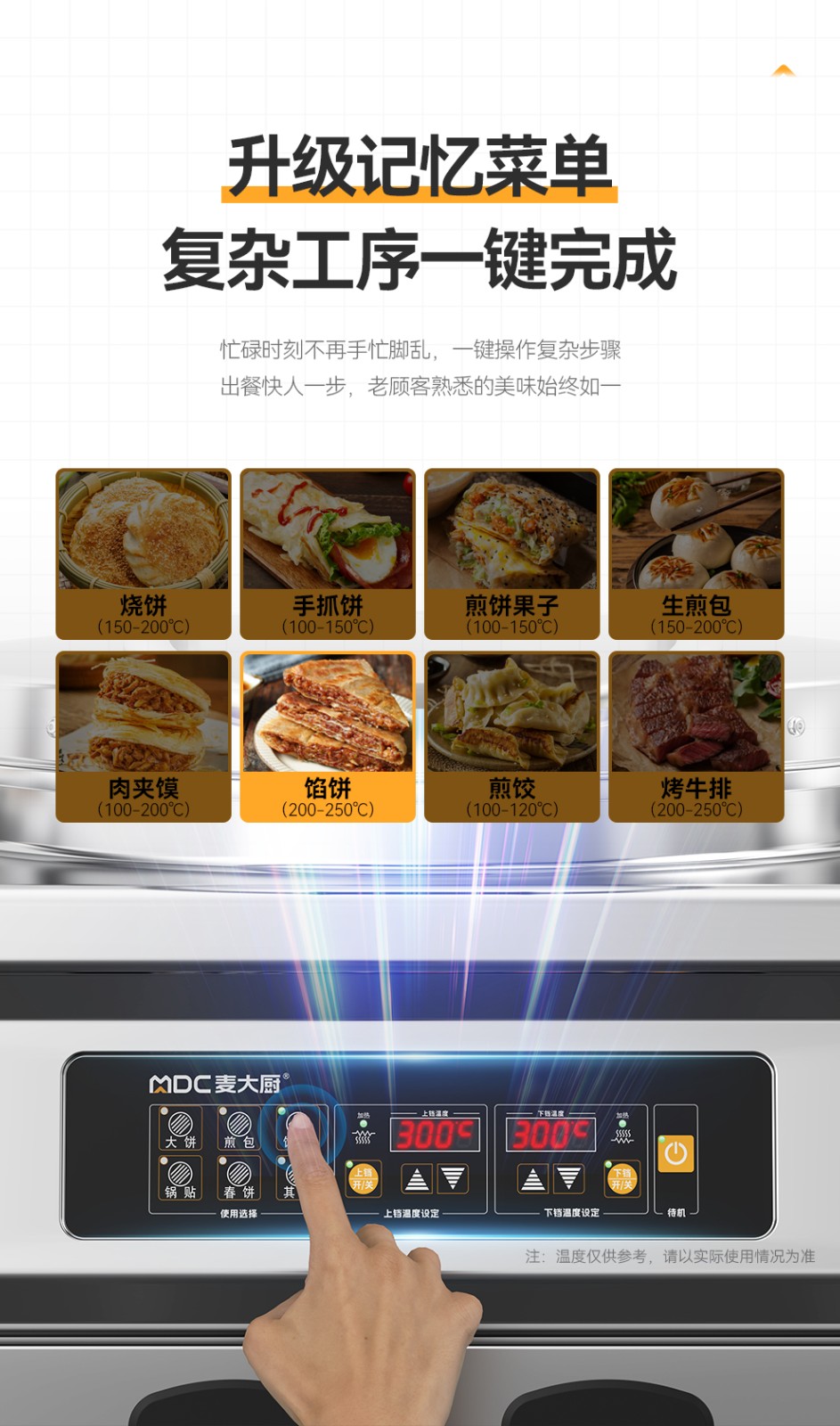 麥大廚商用電餅鐺大型柜式電腦款鐵/鋁鍋雙面加熱