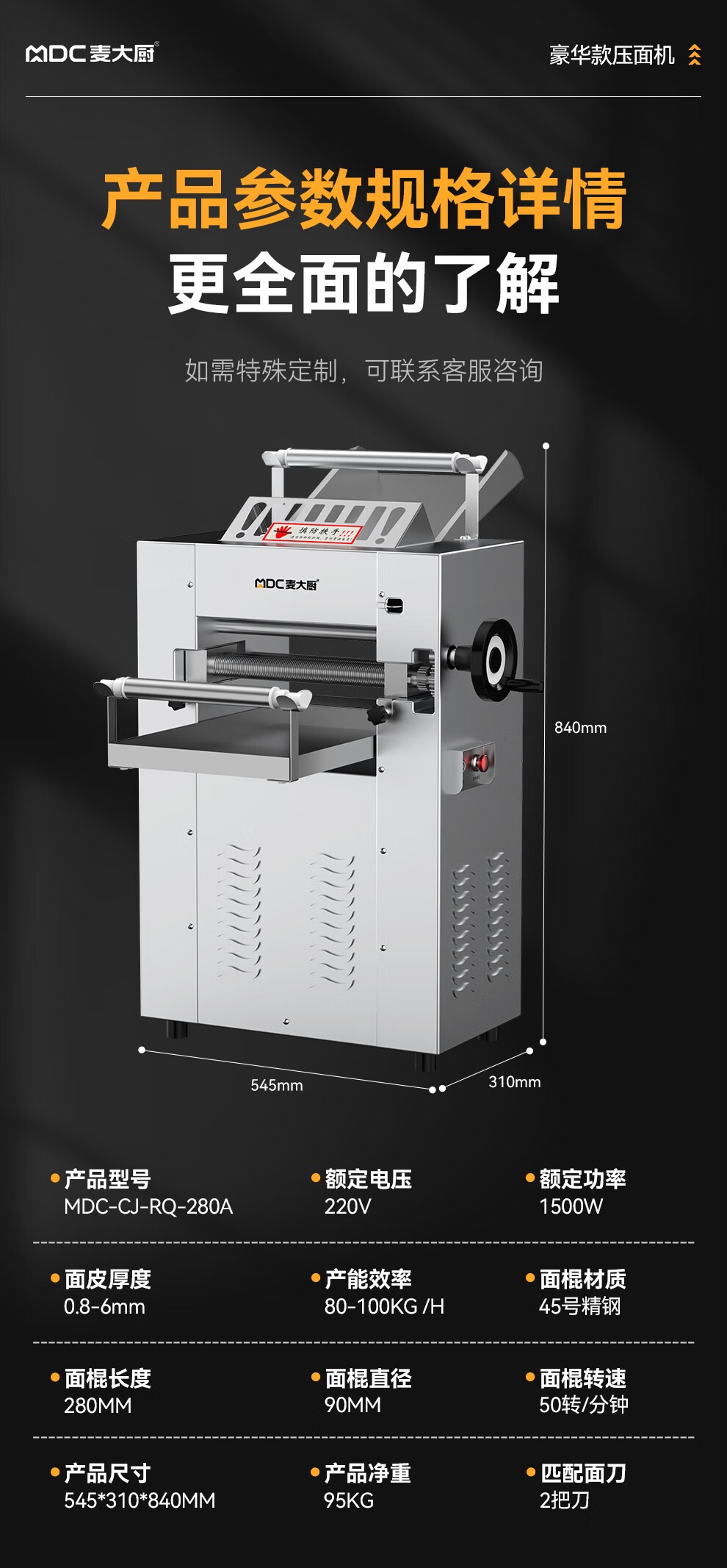 面輥轉速:50轉/min - 更多MDC商用壓面機規格咨詢在線客服