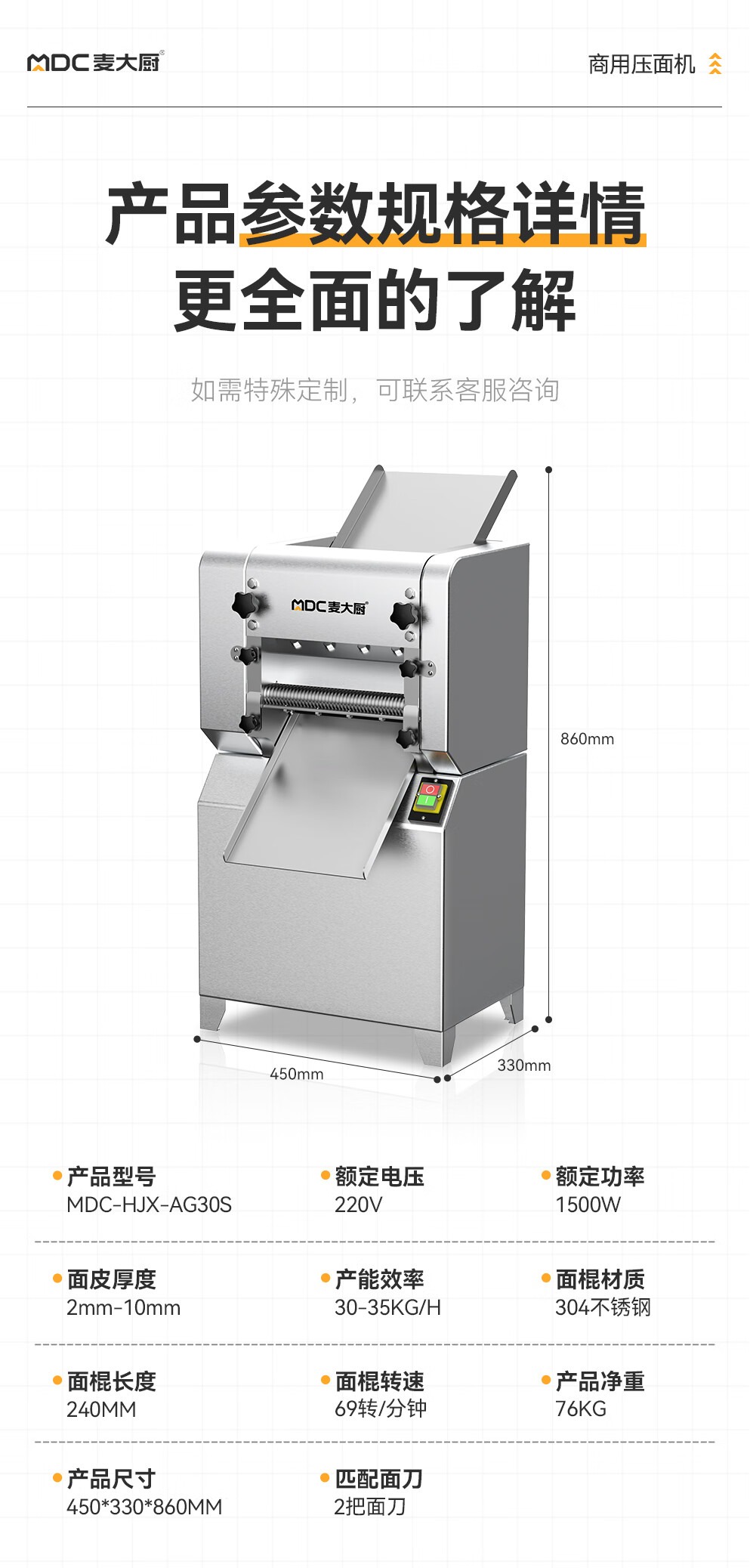 面皮厚度:2mm-10mm - 更多MDC商用壓面機規格咨詢在線客服