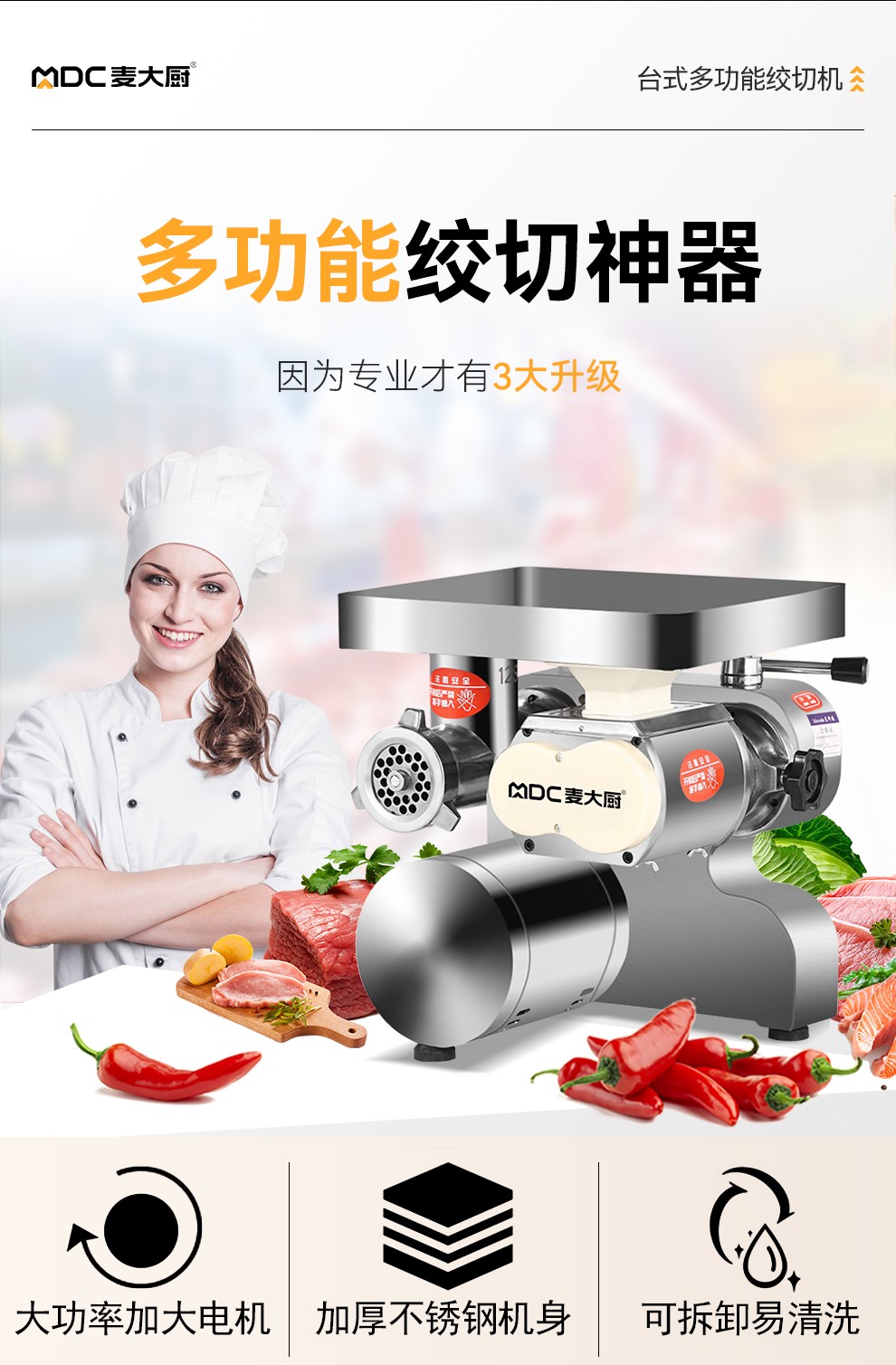麥大廚1.8KW商用多功能可脫卸臺式絞切肉機灌腸機碎肉機