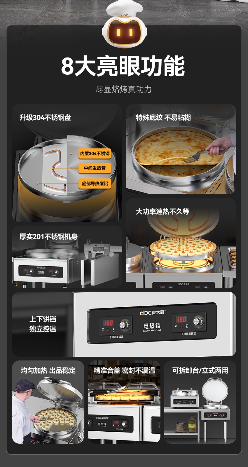 麥大廚380V數(shù)顯標(biāo)準(zhǔn)款商用電餅鐺食堂烙餅機(jī)(不銹鋼5cm)