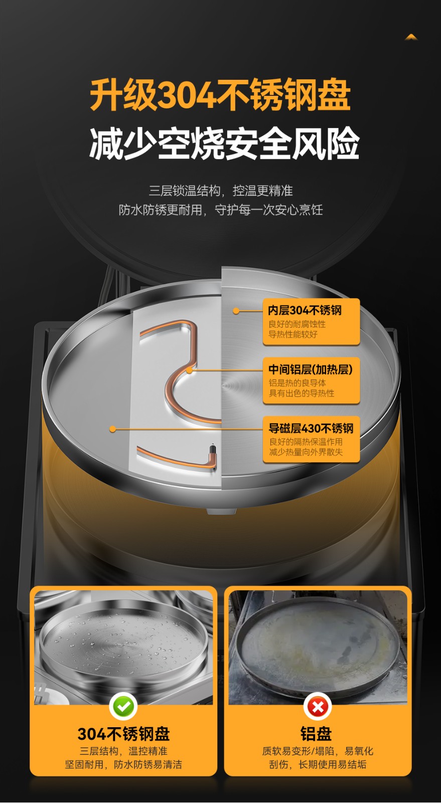 鍋體材質(zhì):304不銹鋼復(fù)底鍋