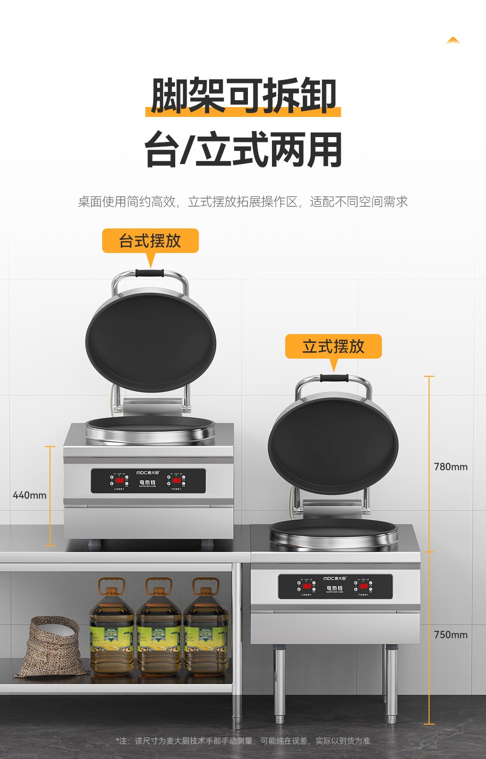 麥大廚380V大型食堂烙餅機數顯升級款商用電餅鐺鐵鍋3cm