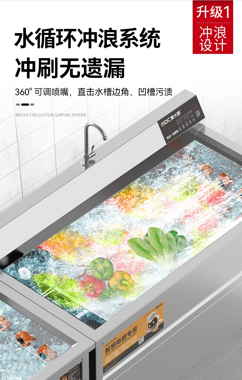 麥大廚商用洗菜機(jī)1.2米三合一多功能(氣泡、臭氧、加熱)洗菜機(jī)