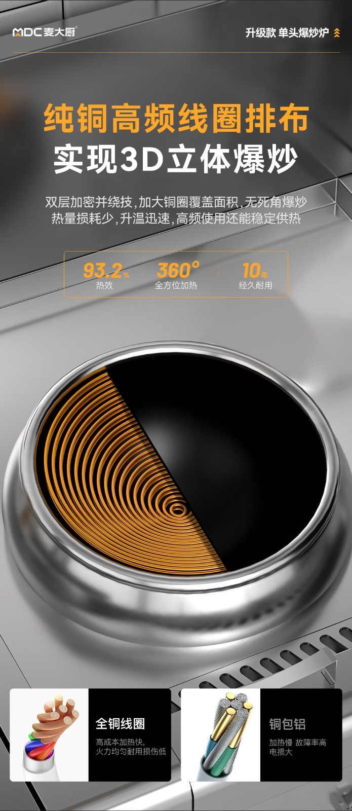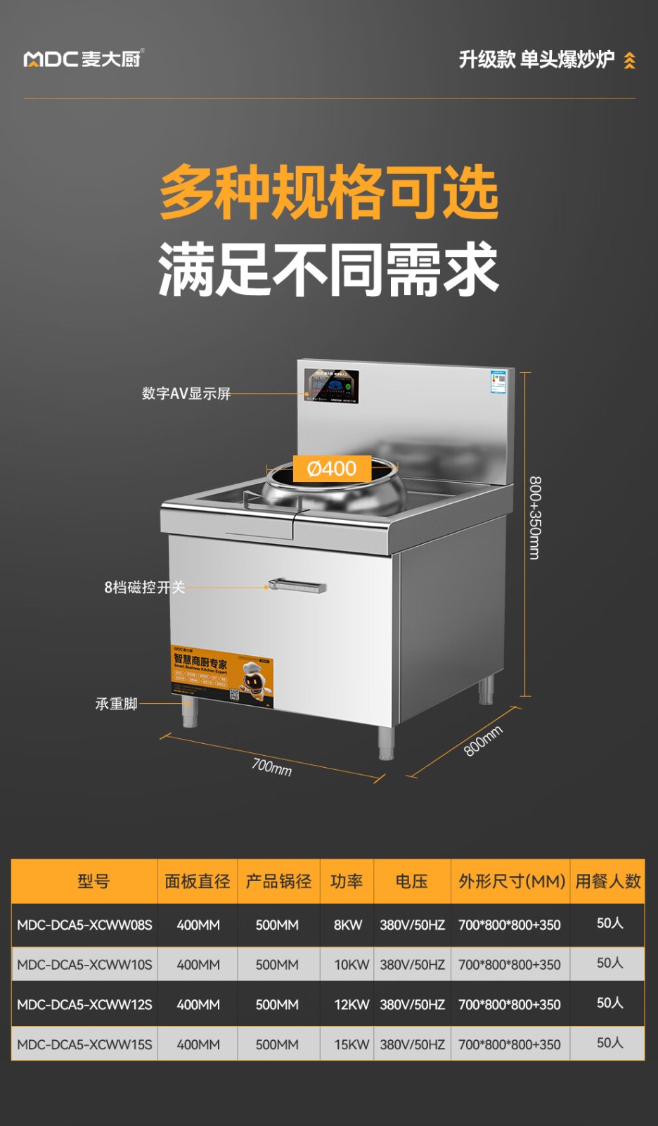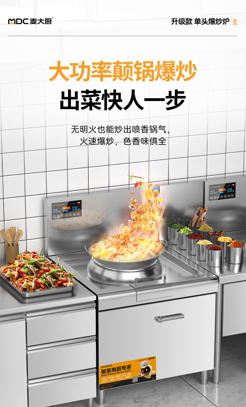 麥大廚食堂大火力電磁灶升級款單頭無尾小炒爐商用8kw