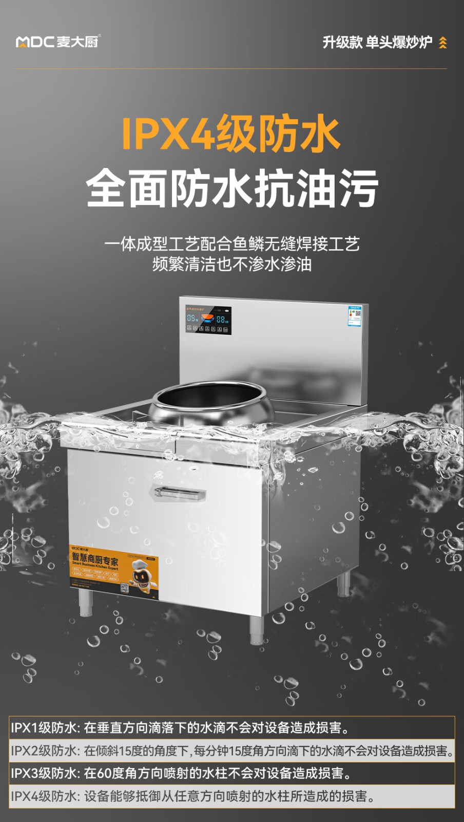 麥大廚食堂大火力電磁灶升級款單頭無尾小炒爐商用15kw