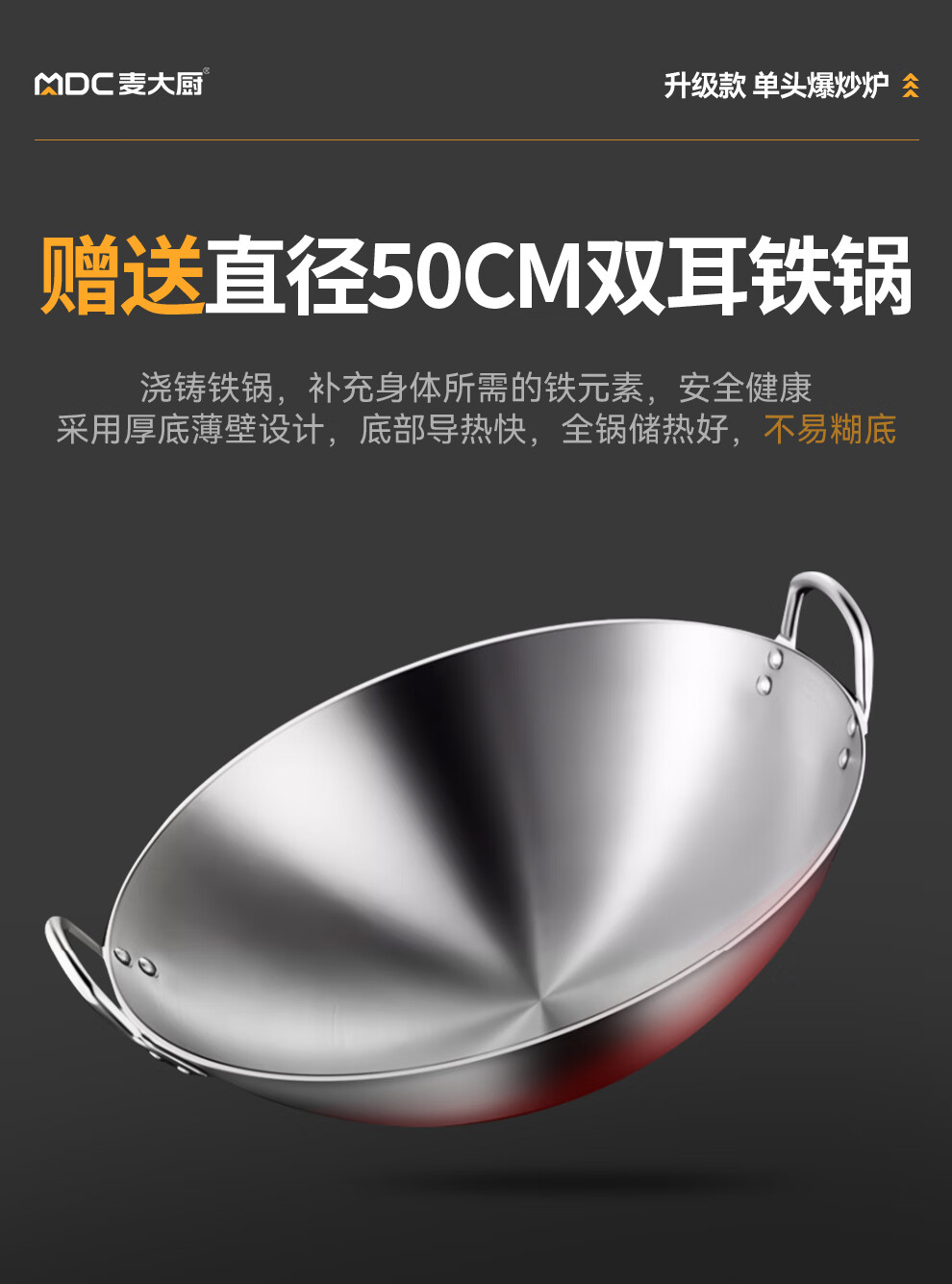 麥大廚升級款8kw單頭單尾小炒爐商用
