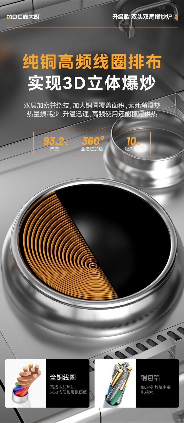 麥大廚升級款雙頭雙尾小炒爐商用8KW