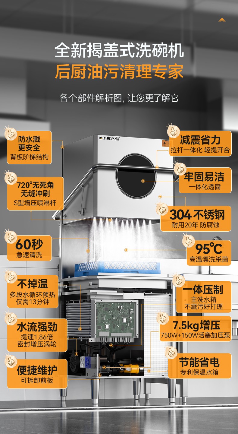 首頁 > 商廚產(chǎn)品 > 洗碗機(jī) > 揭蓋式洗碗機(jī) >麥大廚RNHS-P50熱能回收款揭蓋式商用洗碗機(jī)6.75kw