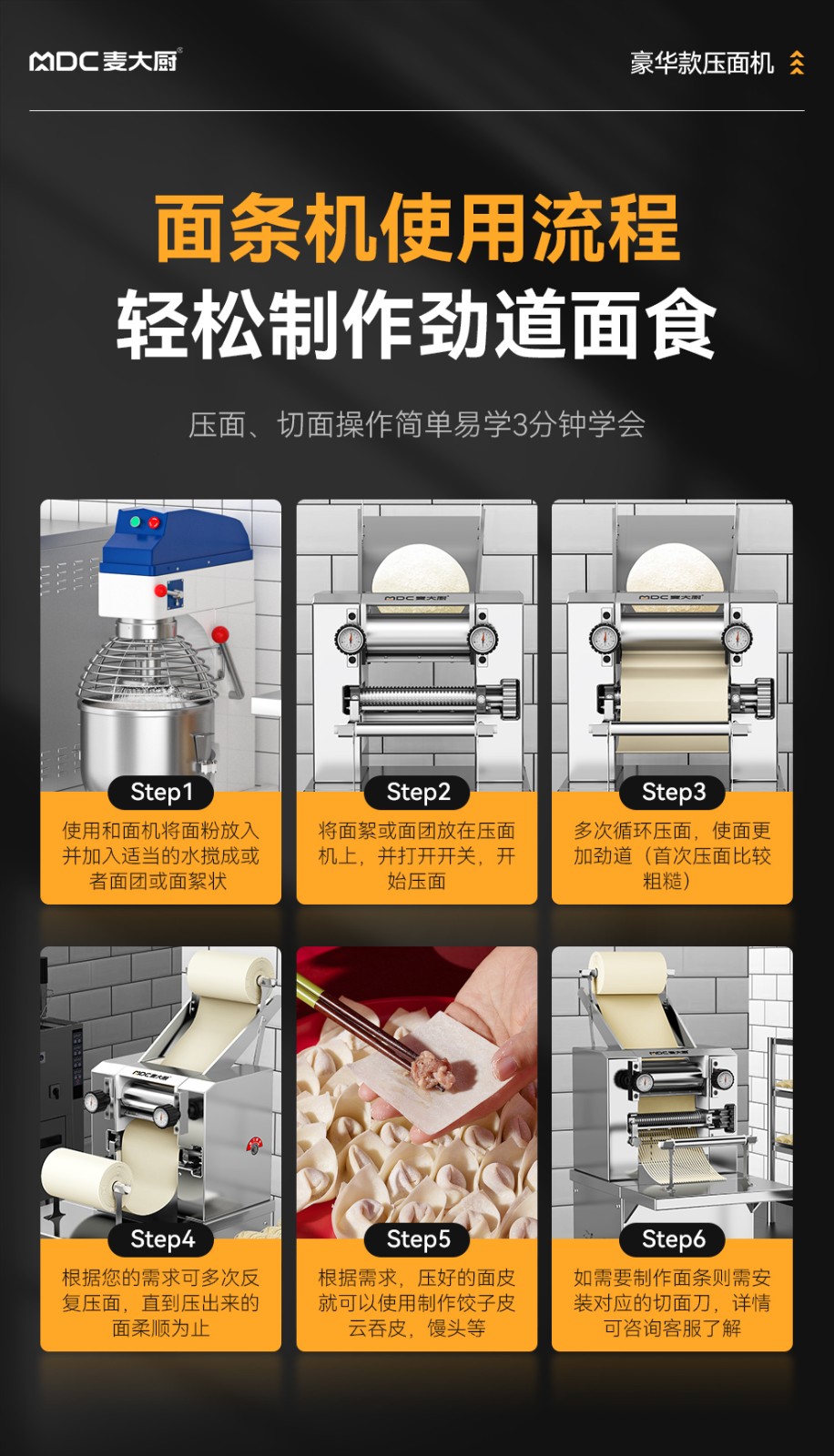麥大廚壓面機商用面皮軋面機多功能揉切面機220V 80-100KG[豪華款]