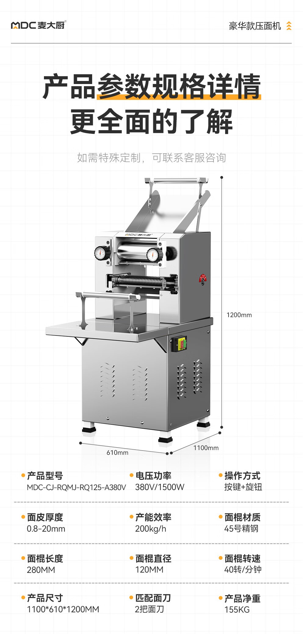 麥大廚大型壓面機商用面皮軋面機自動揉切壓面機380V 100-120KG[豪華款]