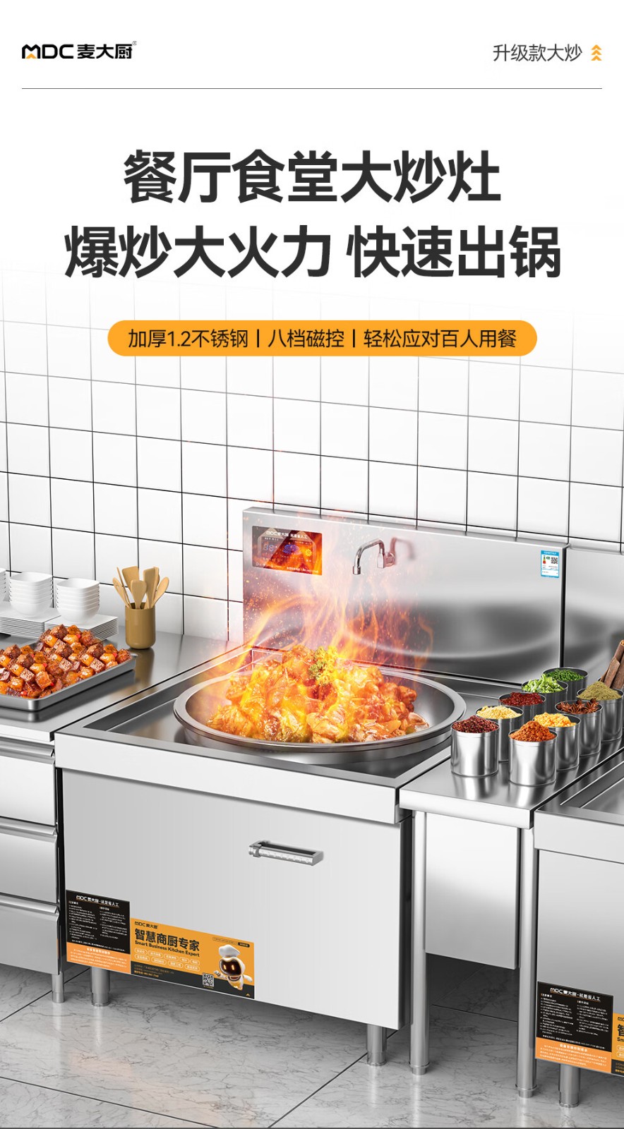 麥大廚飯店百人大炒爐電磁版升級款20KW單頭單位食堂商用大炒爐
