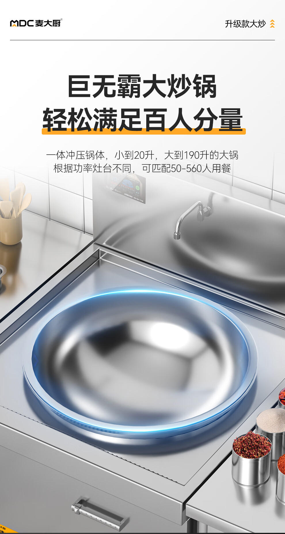 麥大廚大型大炒鍋電磁爐升級款30KW單頭工廠食堂商用大鍋灶