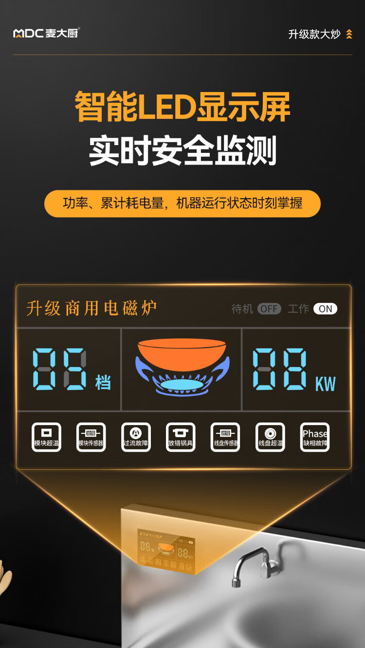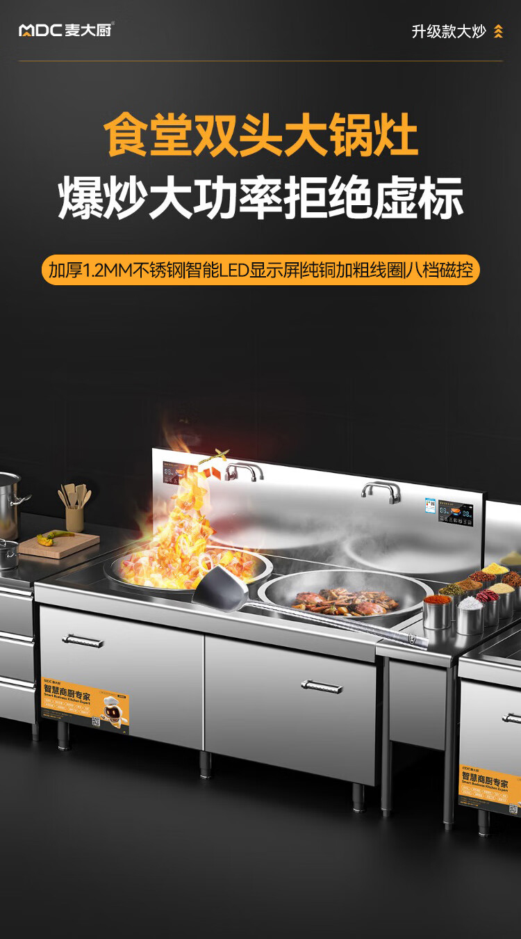麥大廚百人大鍋灶電灶臺升級款20KW雙頭大型飯店大炒鍋