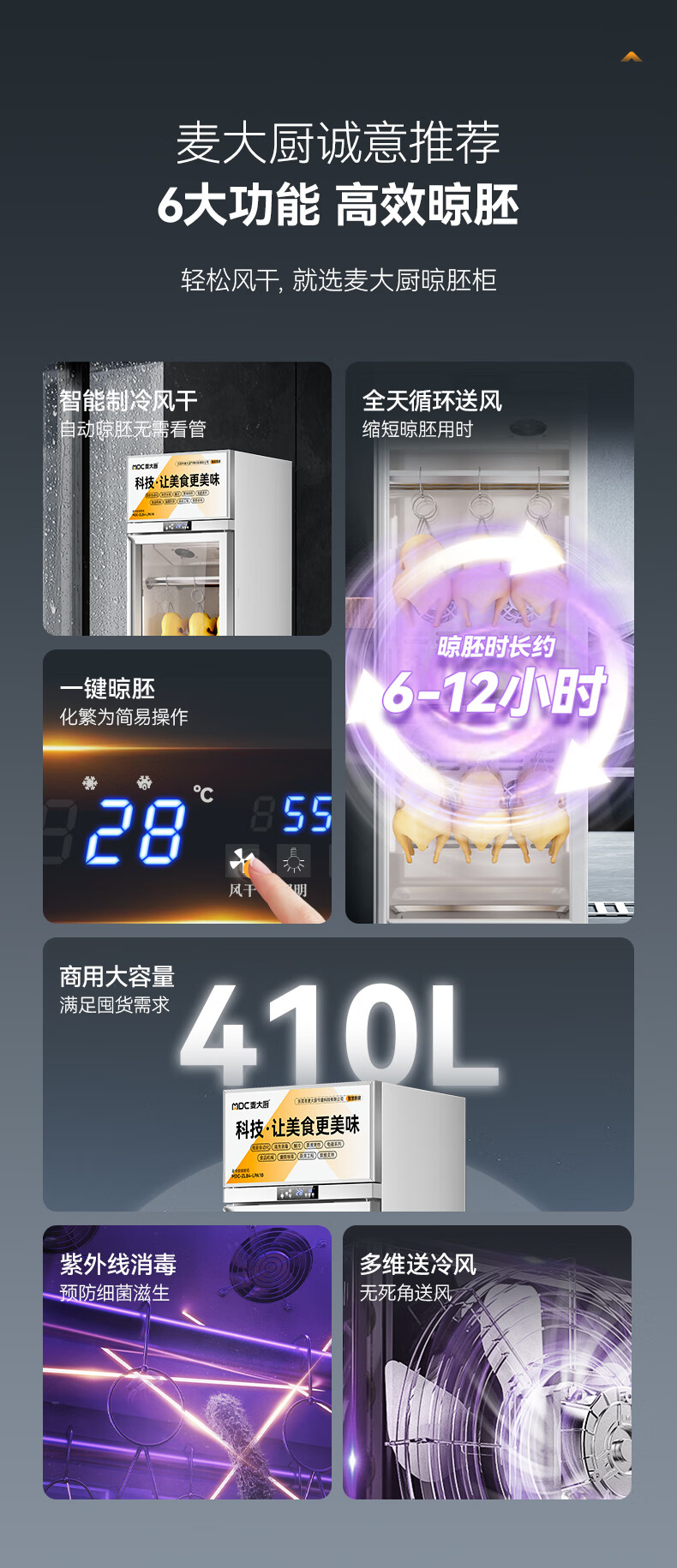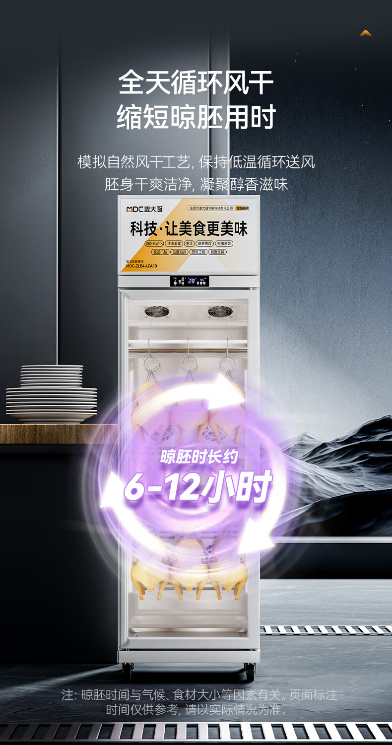 麥大廚商用智能晾鴨柜豪華單門款880W鴨胚晾胚柜