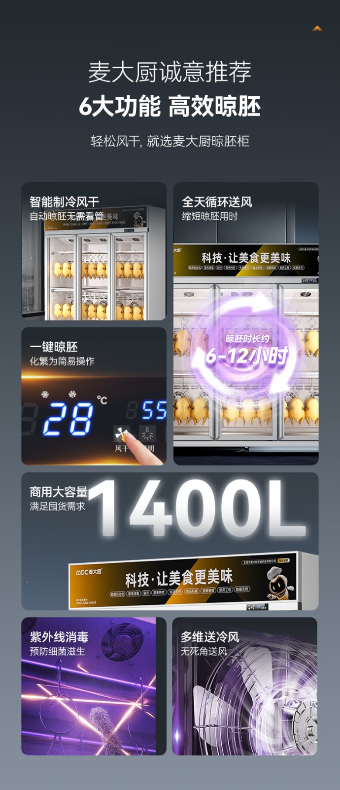 麥大廚商用烤鴨風干柜豪華三門款1580W烤鴨晾胚柜