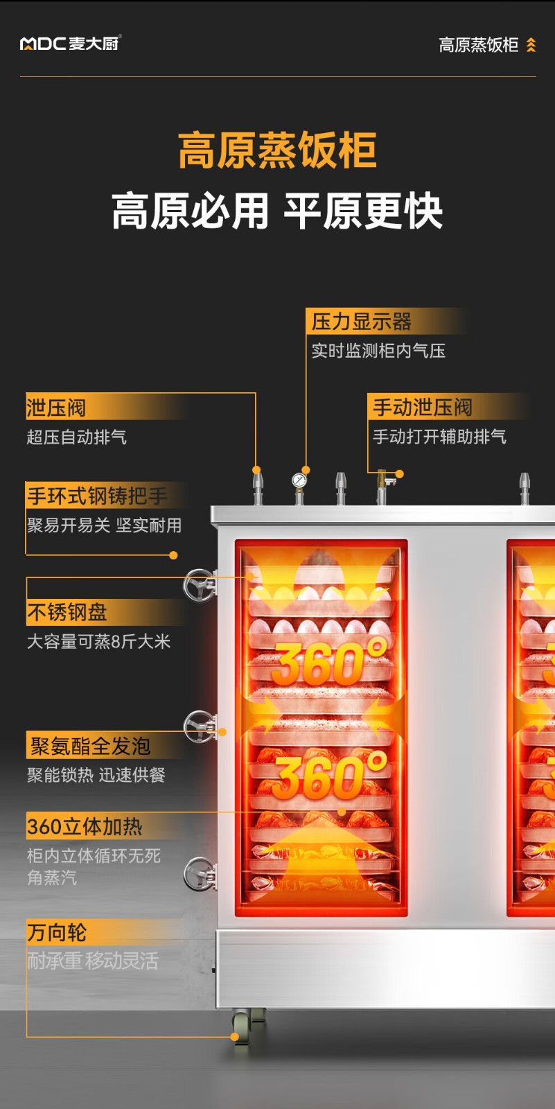 MDC商用高原蒸柜燃氣款20盤雙門蒸飯柜