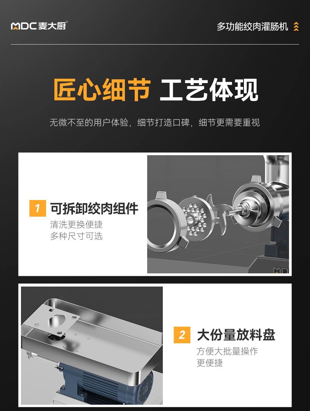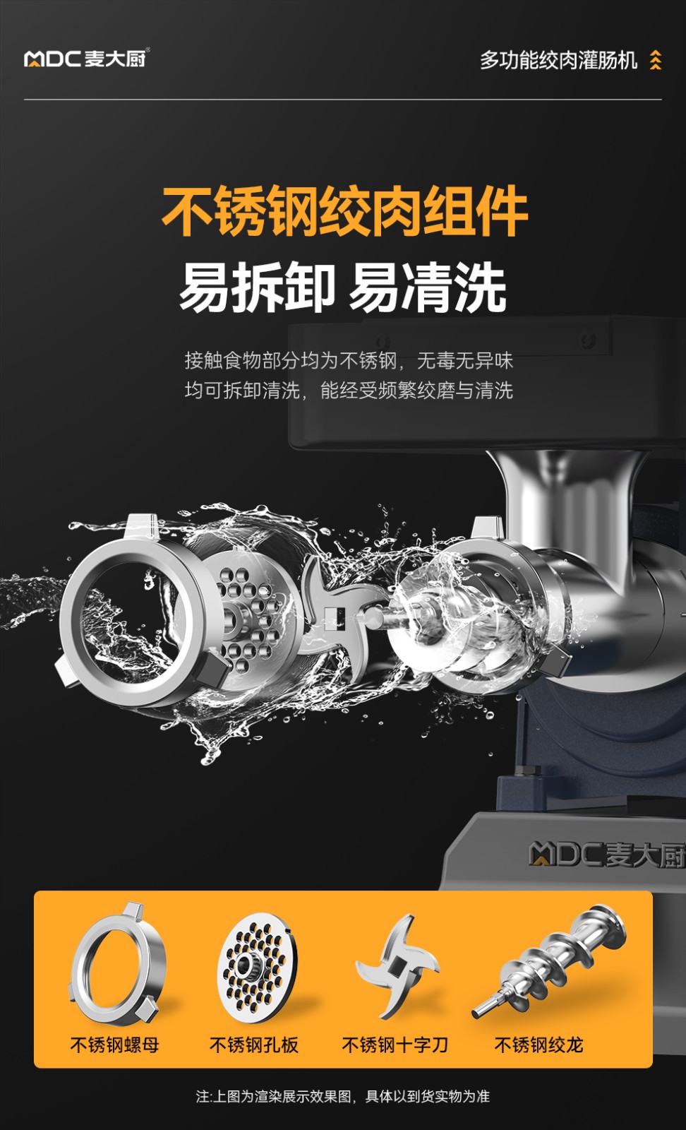 可選配規(guī)格:4mm、10mm、三眼孔板 - 更多MDC商用絞肉機(jī)規(guī)格咨詢?cè)诰€客服