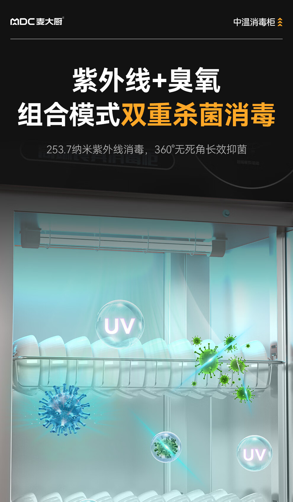 - 消毒方式:紫外線+臭氧+中溫烘干