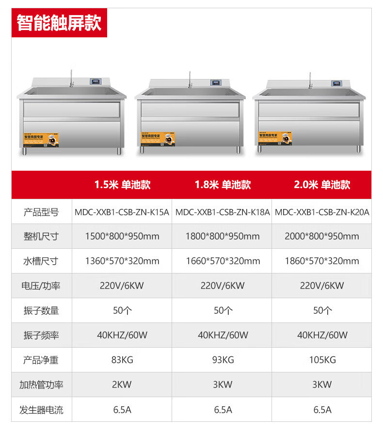 麥大廚智能觸屏款0.8米單池通池超聲波洗碗機