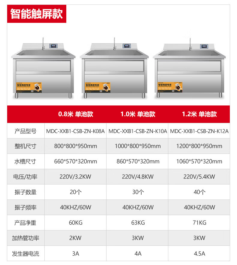 麥大廚智能觸屏款1.2米單池通池超聲波洗碗機