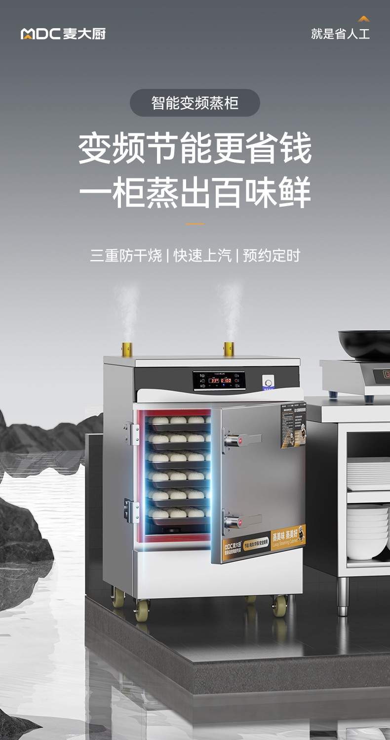 麥大廚商用蒸柜6盤變頻款單門電熱蒸箱蒸飯車全自動蒸飯柜