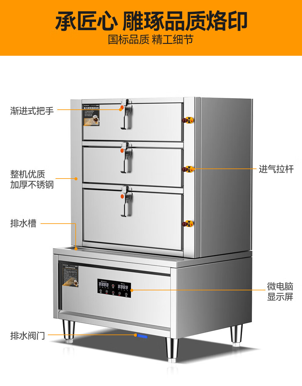 麥大廚商用蒸柜900mm標準電熱款三門海鮮蒸柜
