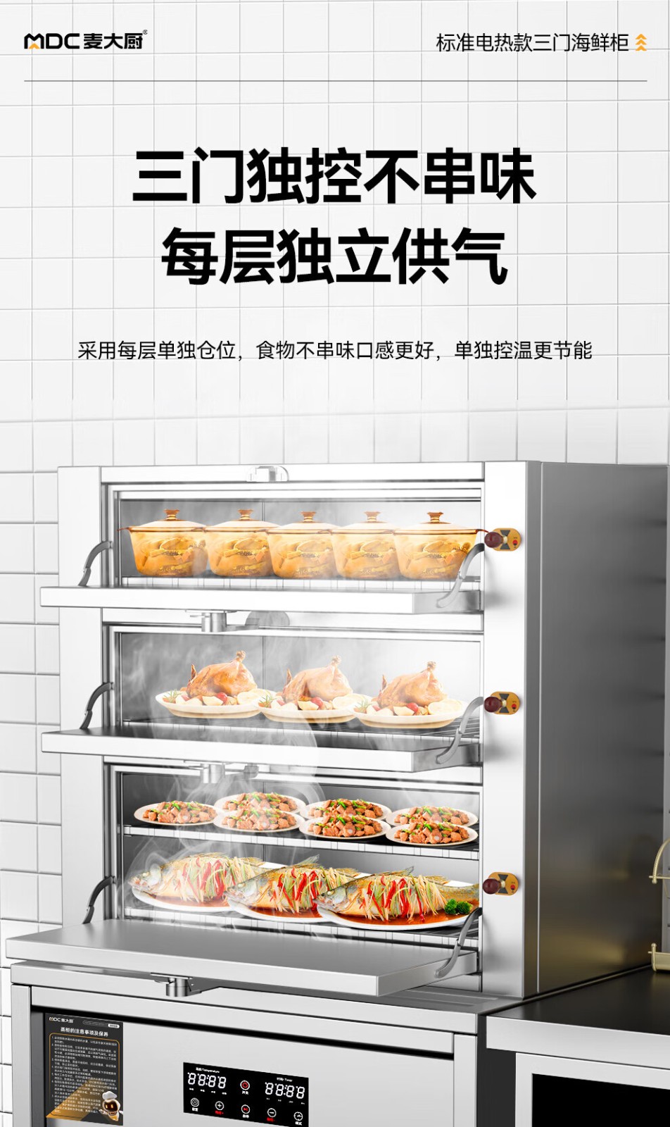 麥大廚商用蒸柜1000mm標準電熱款三門海鮮蒸柜