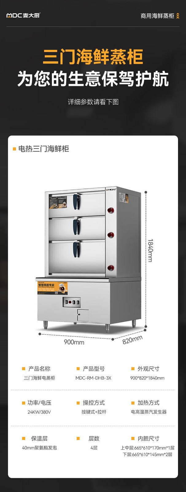 麥大廚商用蒸柜900mm電熱款三門海鮮蒸柜